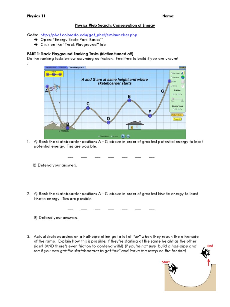 Phet energy skate park simulator s basic instructions duration.